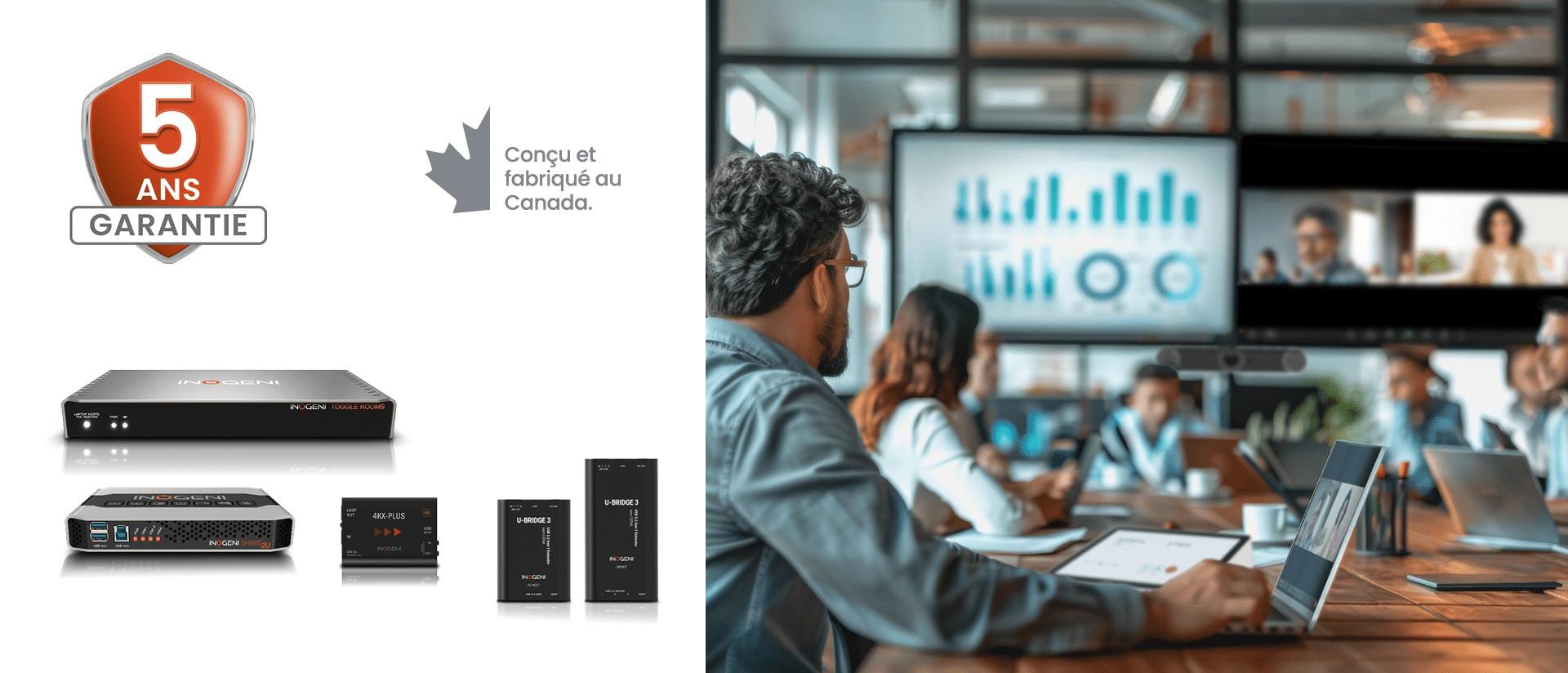 Chez INOGENI, nous nous engageons à fournir des produits qui illustrent la performance, la fiabilité et la durabilité. C’est pourquoi nous sommes fiers d’offrir notre nouvelle garantie de cinq ans, la meilleure du secteur, sur tous les produits achetés par les utilisateurs finaux après le 1er août 2024. Cette confiance découle de notre fabrication et de notre ingénierie de premier ordre. Avec INOGENI, vous obtenez des appareils pro-AV qui fonctionnent de manière transparente et améliorent la productivité.