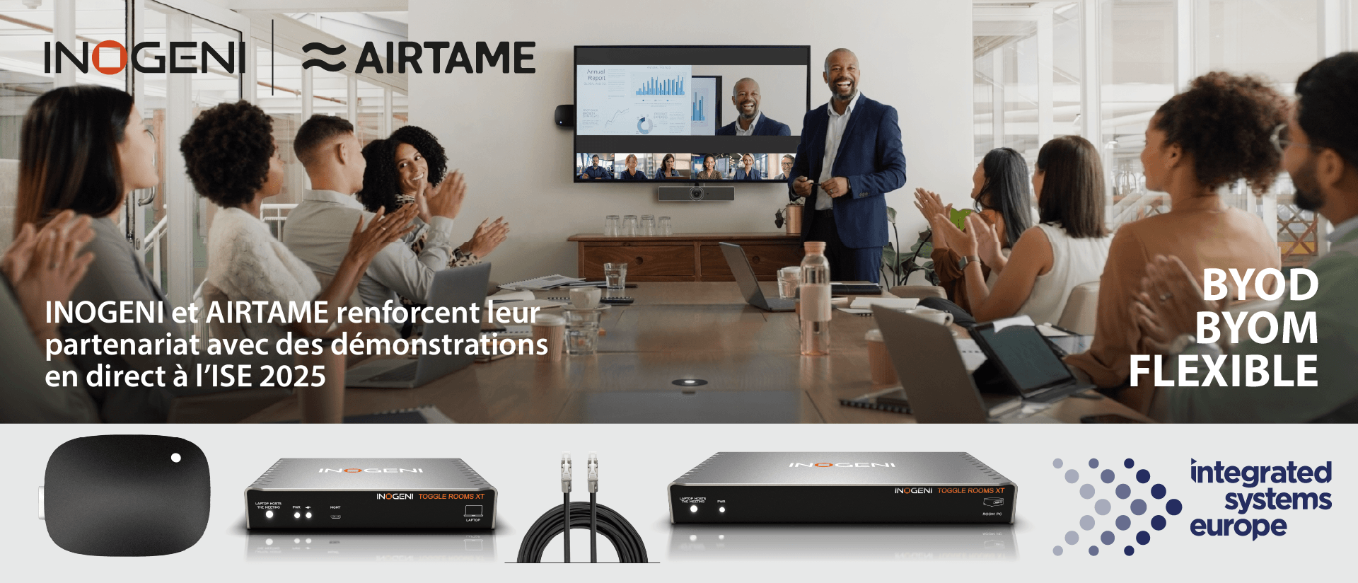 INOGENI et AIRTAME font passer leur collaboration à la vitesse supérieure en présentant le TOGGLE ROOMS XT aux côtés des solutions d’AIRTAME à l’ISE 2025 sur le stand d’AIRTAME (2V220). Cette démonstration en direct illustrera comment le TOGGLE ROOMS XT s’intègre de manière transparente à AIRTAME pour les applications dans les grands espaces, autant dans les entreprises que dans les environnements éducatifs. Conçu pour offrir de solides capacités de vidéoconférence avec et sans fil, ce duo dynamique assure des transitions transparentes entre les installations BYOM et les installations dans les salles. Les participants verront de leurs propres yeux comment cette association innovante améliore la flexibilité, la facilité d’utilisation et l’efficacité des réunions dans les salles de conférence, les auditoriums et les amphithéâtres modernes.