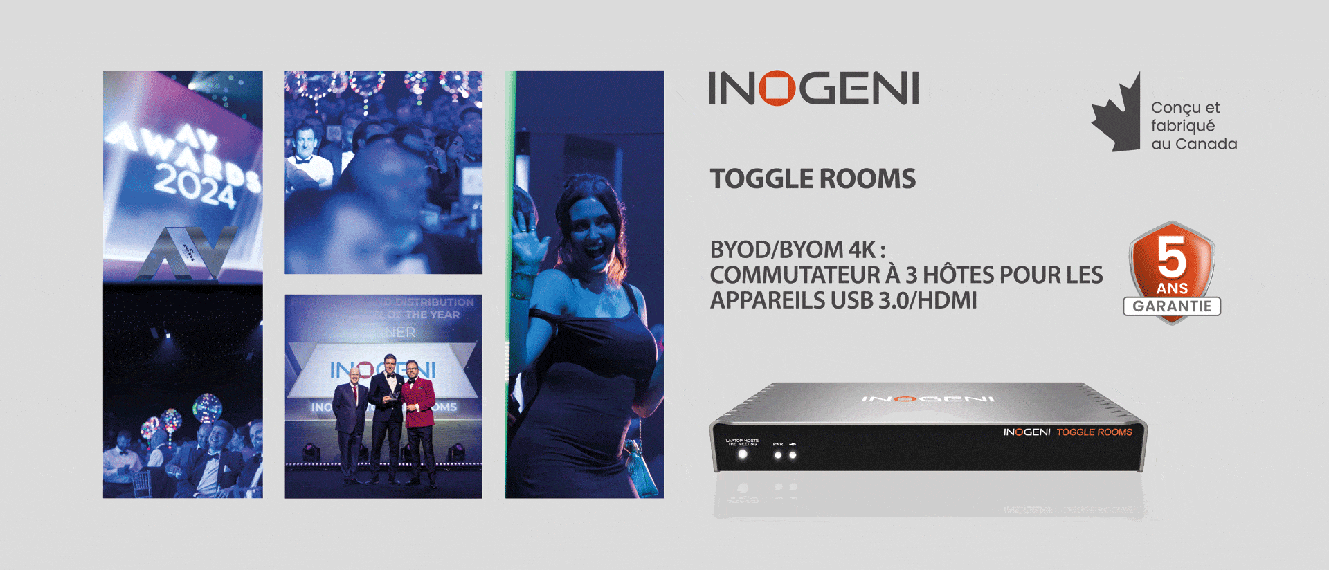 Quelle nouvelle fantastique : 🌟Grâce à notre commutateur à trois hôtes BYOD/BYOM, le TOGGLE ROOMS d’INOGENI a remporté le prix Technologie de traitement et de distribution de l’année aux AV Awards organisés par AV Magazine.