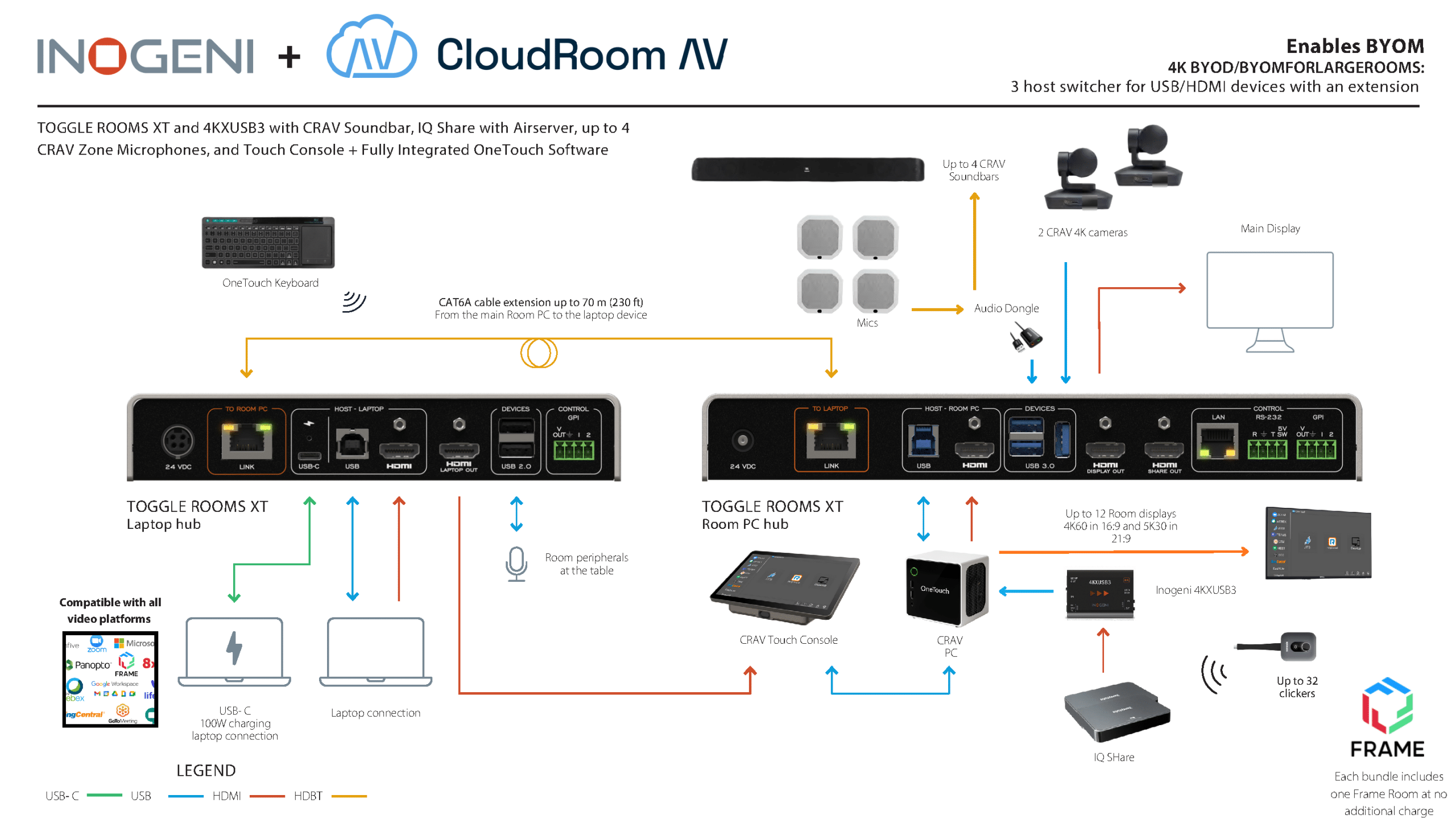 TOGGLE ROOMS and TOGGLE ROOMS XT – 4K BYOD/BYOM for large rooms