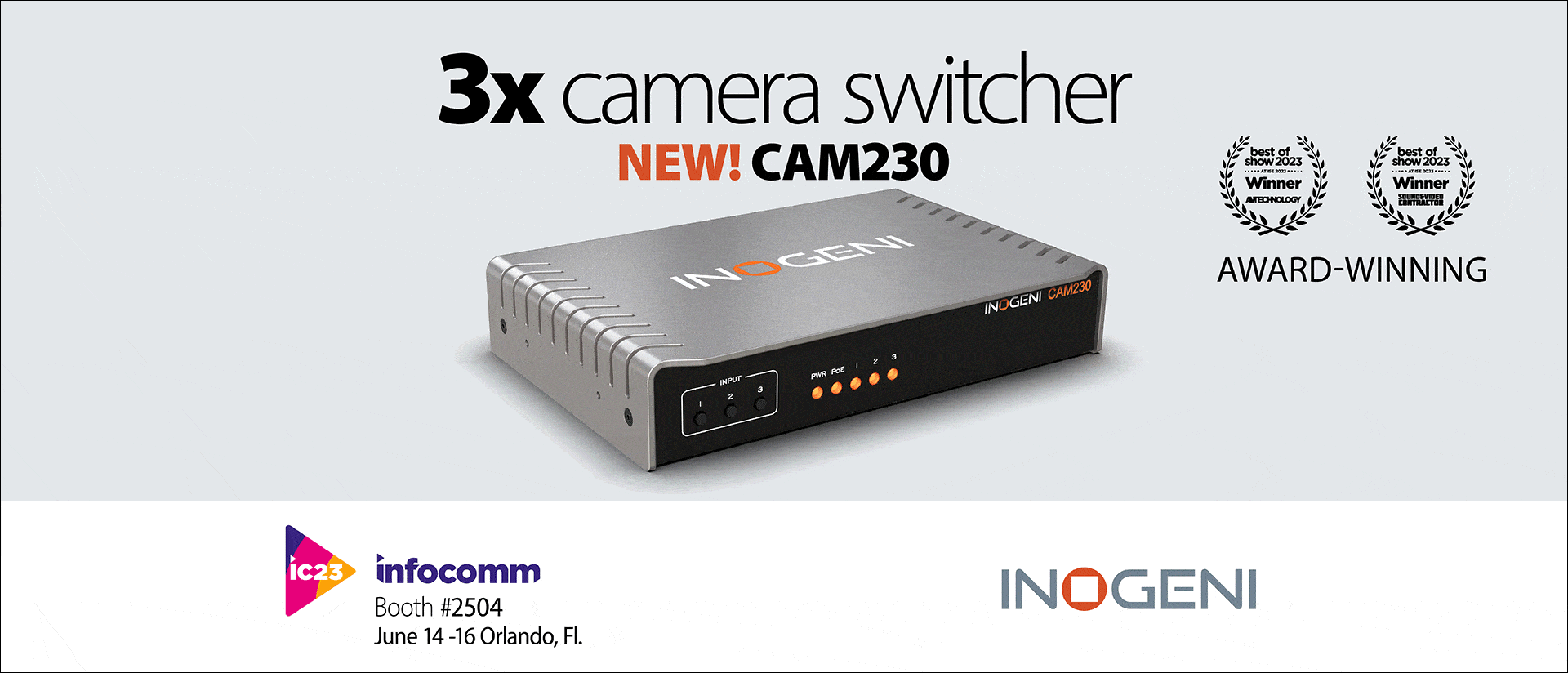 This compact and well-designed multi-camera switcher is perfect for classrooms and collaborative meetings. Building on the success of our award-winning SHARE2U mixer for two cameras and the popular CAM300 for four cameras, the CAM230 is sure to shake up the AV industry. Get ready to experience the power of INOGENI’s innovative technology!