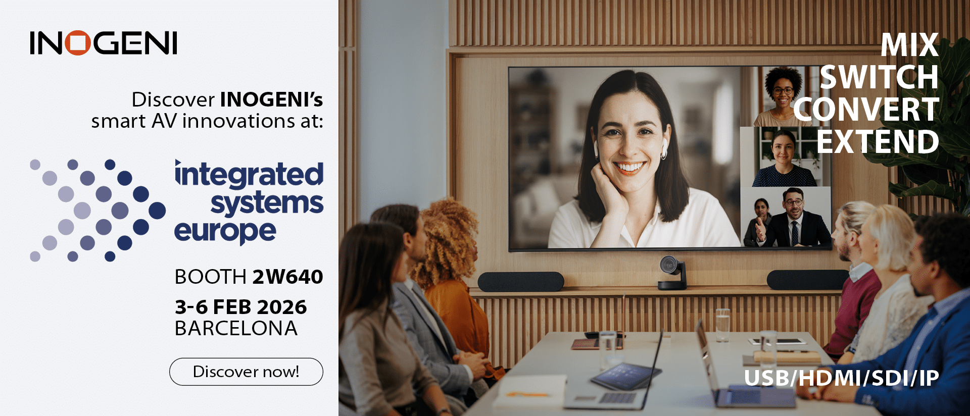 Opticis and INOGENI will showcase the TOGGLE ROOMS and the Opticis USC-CC32 active optical cable at ISE 2026. We invite you to visit the INOGENI Booth #2W640 and the Opticis Booth #5A190 to start the discussion on how we can extend your possibilities and simplify your meeting room deployments.