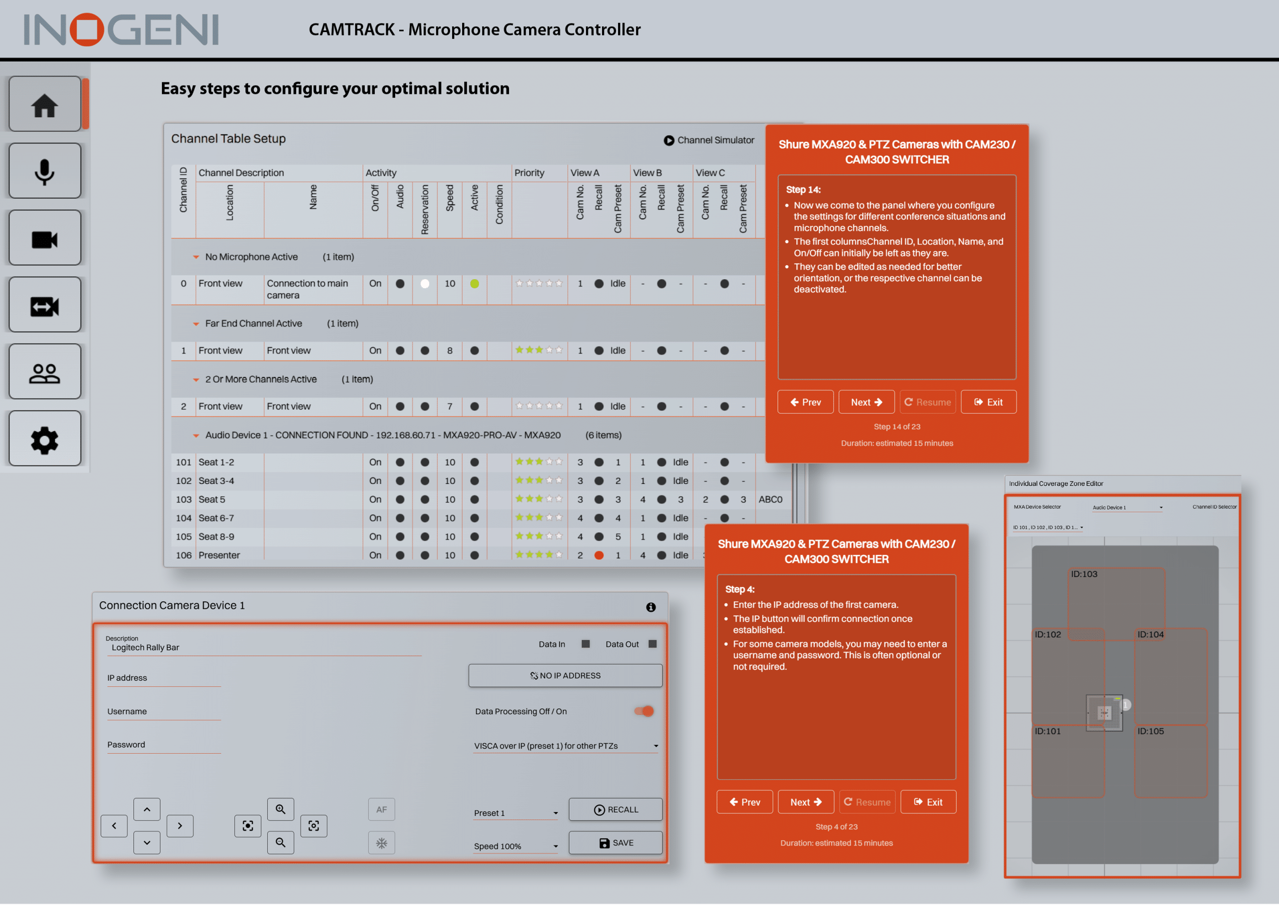 • CAMTRACK: Supports up to 4 SHURE devices and 8 PTZ cameras