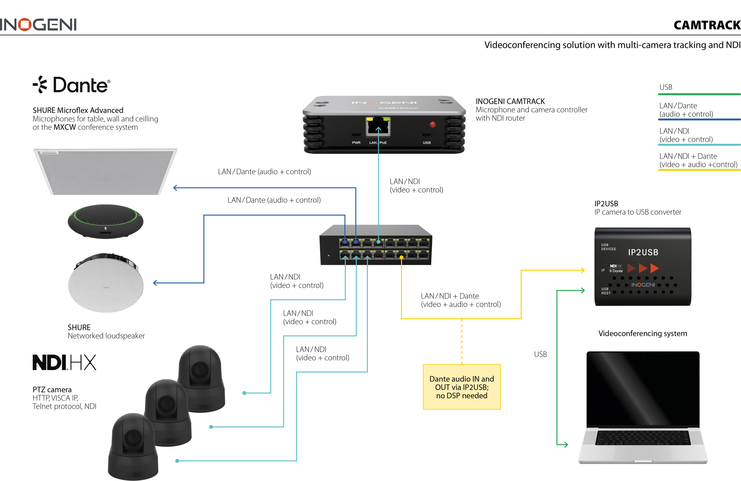 This synergy ensures far-end viewers always receive the optimal camera angle through an automated and high-quality viewing experience. It bridges the gap between professional IP/NDI/Dante infrastructure and standard USB-based conferencing platforms with confidence.