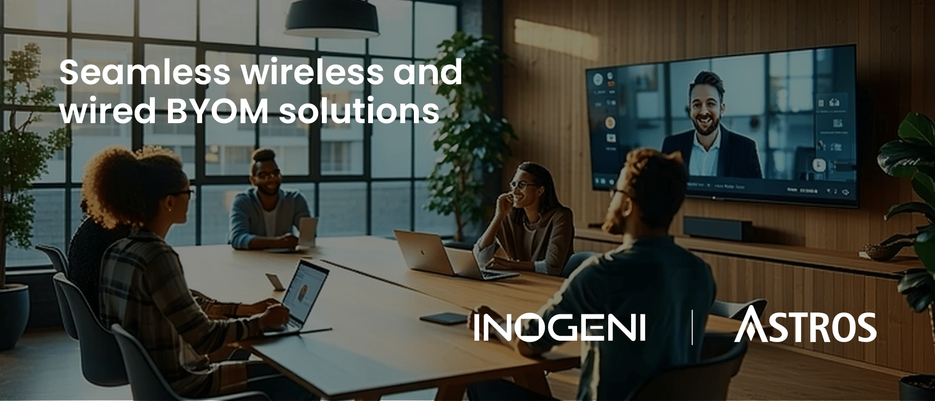 We are excited to announce our partnership with ASTROS, merging its advanced wireless presentation and conferencing solutions with INOGENI’s exceptional wired video input, mixing, switching, and extending capabilities. Together, we provide a seamless, reliable meeting experience, offering both wireless and wired screen sharing, BYOM capabilities, and compatibility with existing systems. Our mission is to make every meeting smooth, efficient, and fully under the user’s control.